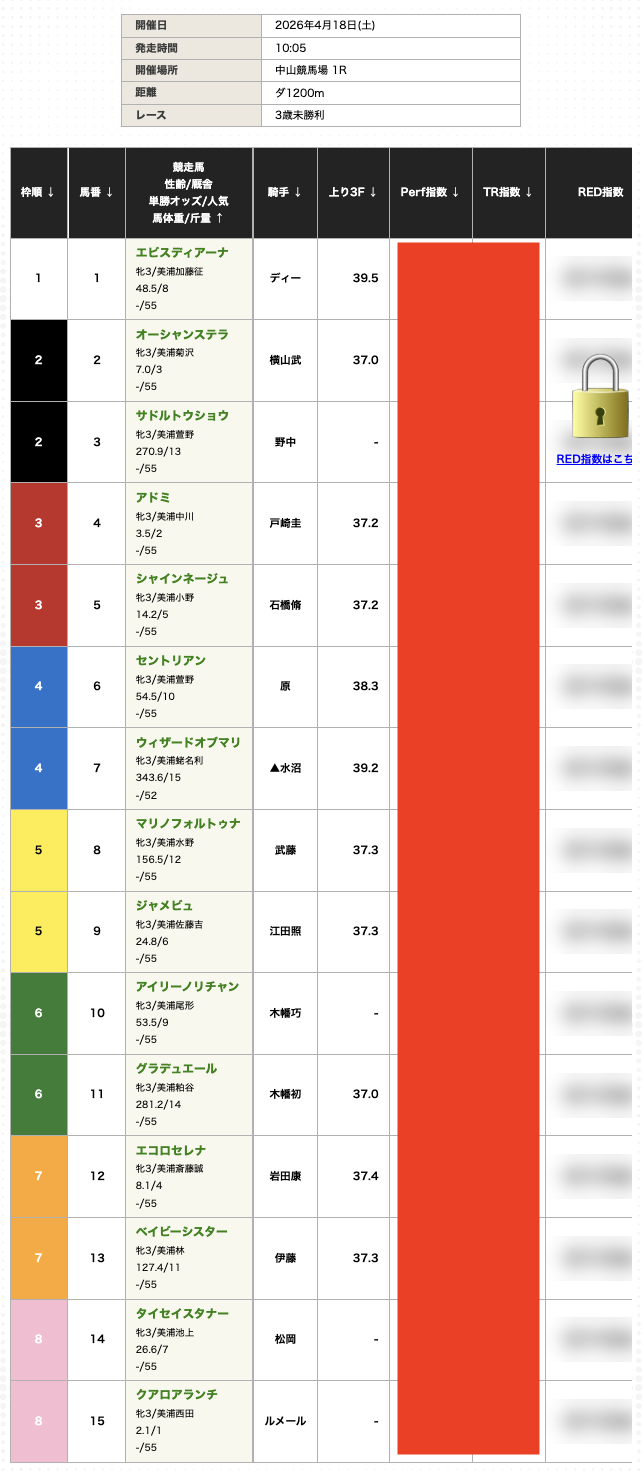 実際に公開されている指数を見ると、「なぜこの馬が来るのか」がしっかり根拠で分かるのが特徴!