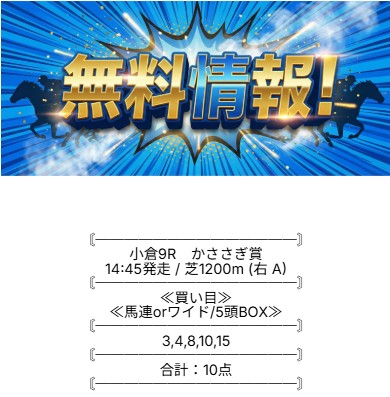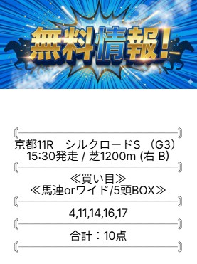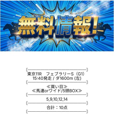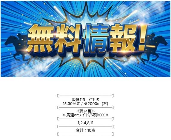 ⇒こちらから無料登録で無料予想が確認できます!